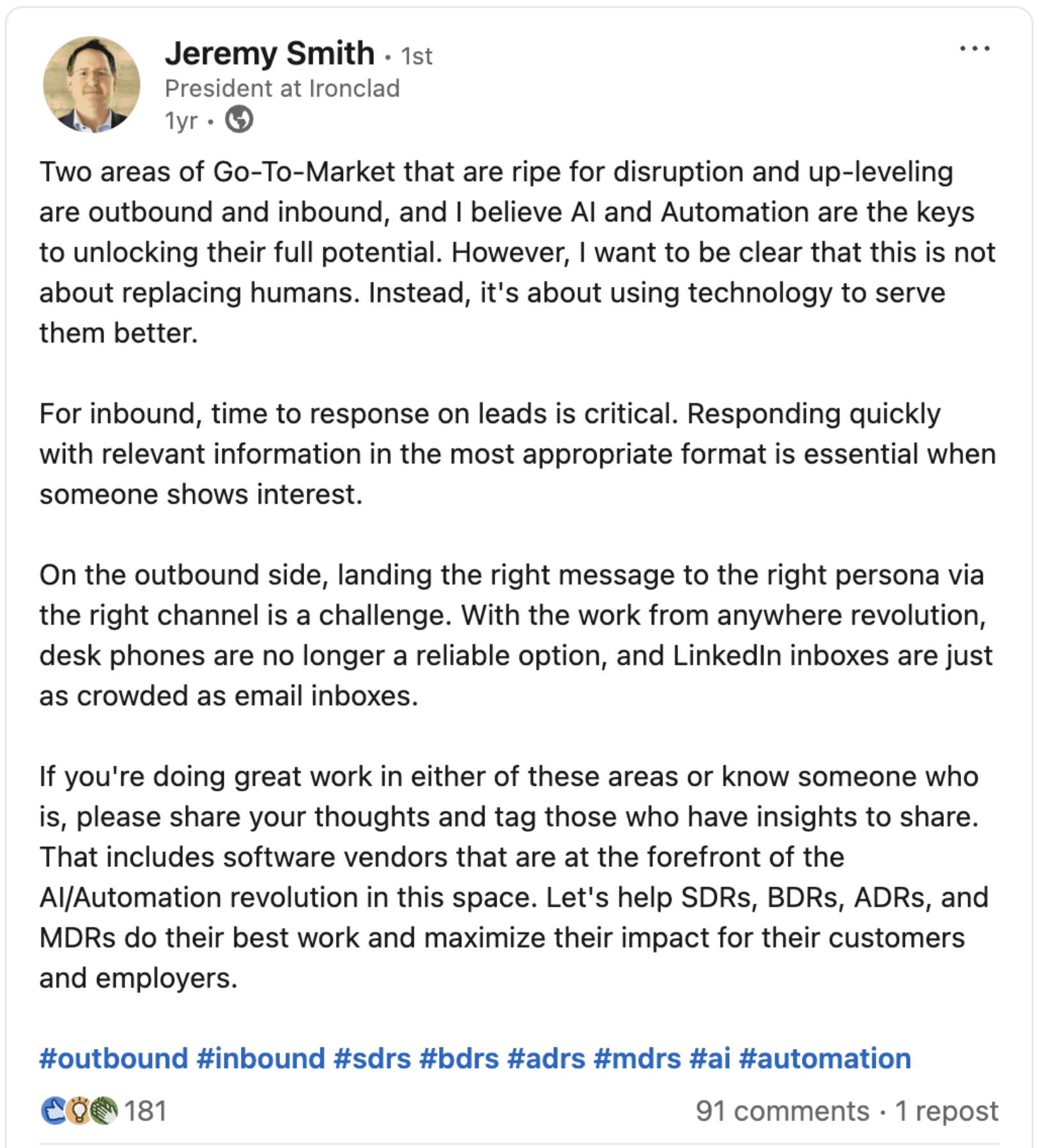 Linkedin Post resulting in tons of inbound from sales AI tools to Ironclad