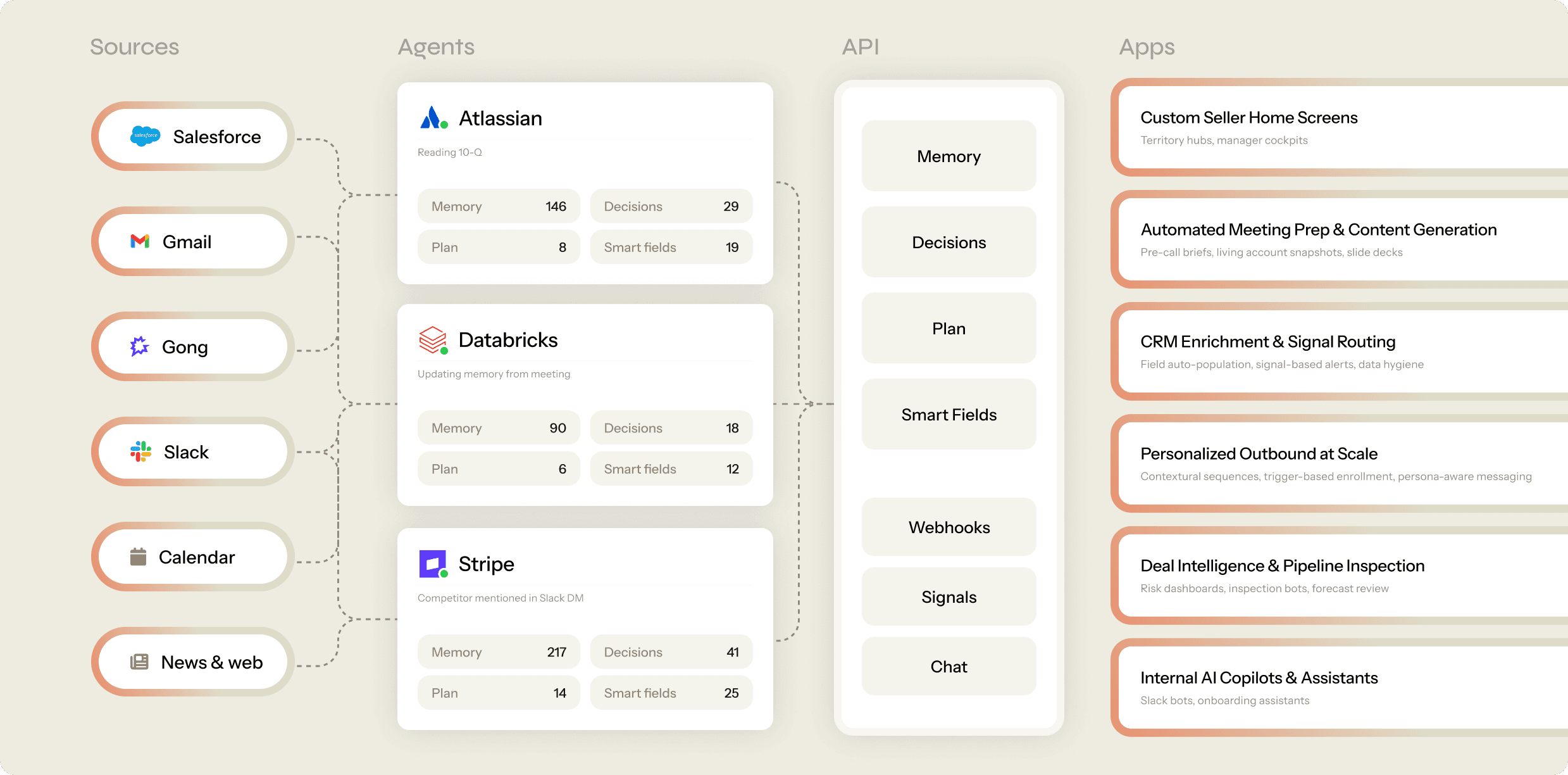 The Actively API gives your team direct access to per-account agent memory, decisions, and strategy. Embed continuously maintained GTM intelligence into any internal tool, workflow, or application.