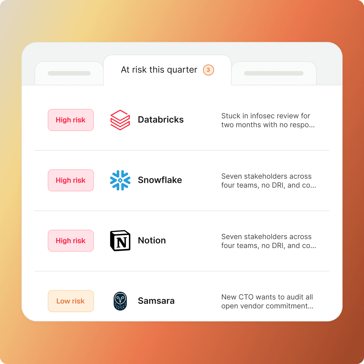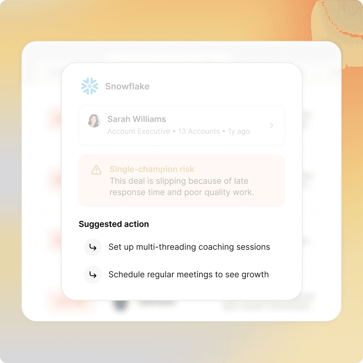 Watchtower gives leaders a live, agent-driven view of every account, every customer, and every risk to guide better governance, coaching, and action before any deal slips.