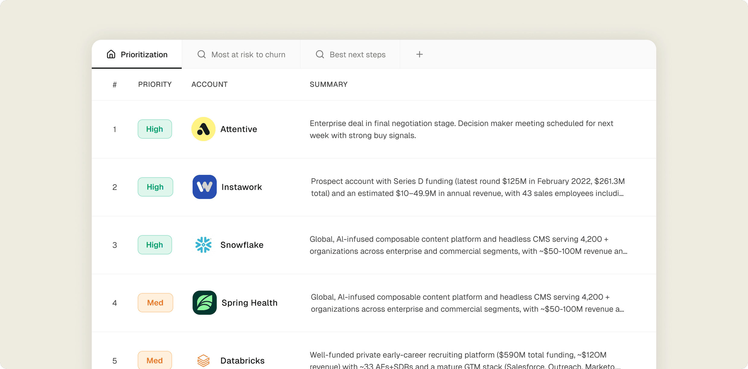 Champion gone dark. Competitive mention. Usage drop. Missed follow-up. Agents detect it the moment it happens, and tell you how to course correct.